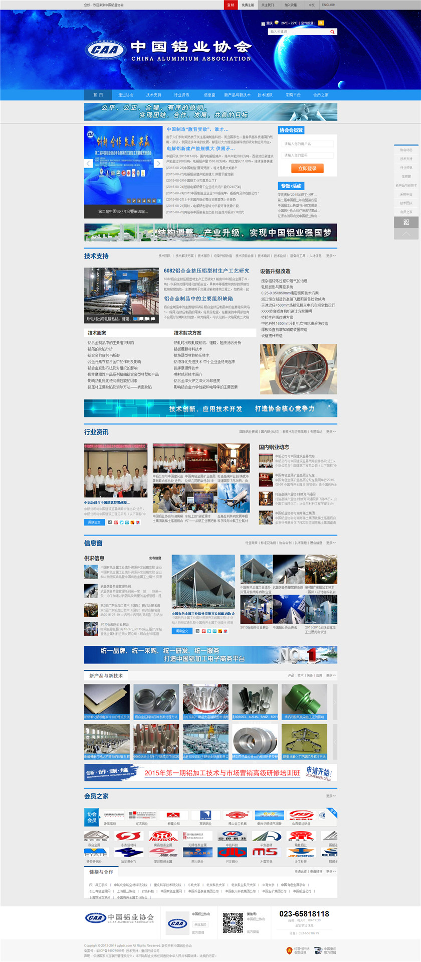 Project Description 中国铝业协会是由中国国内主要从事铝合金铸造、板、带、箔、管、棒、型材、锻件等企业组成的行业协会组织,协会由国内具有一定规模和影响力的企业发起,已有三百多家会员企业,目前还有很多企业踊跃希望加入,协会现有会员企业年销售额1000多亿元人民币,协会会员企业分布在国内华东、华南、西南、环渤海、东北、胶东半岛等中国经济活跃地区;产品涵盖航空航天、兵器装... Official website address 贵港http://www.caa2014.com I want to share